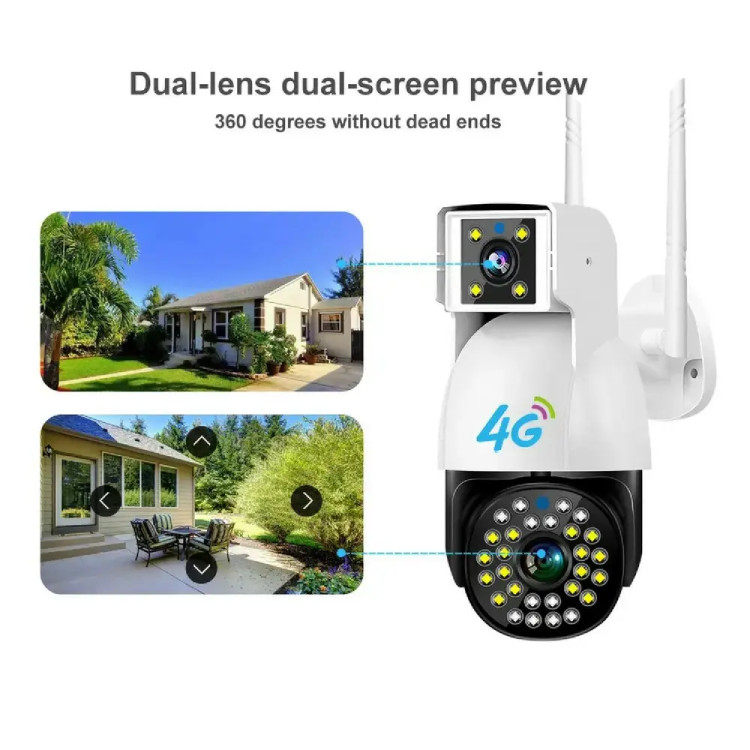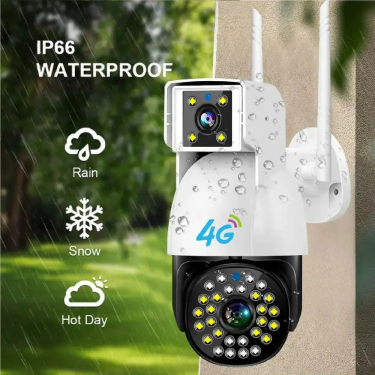 دوربین مداربسته اسپیددام دو لنز سیم کارتی (4G) ریجستری شده مدل 4G سیم کارتی PTZ camera ، با وضوح تصویر 8مگاپیکسل و با نرم افزار محبوب V380 طوری طراحی شده است که شما میتوانید بدون استفاده از مودم و با قرار دادن سیم کارت داخل دوربین به راحتی محیط خود را از راه دور بر روی گوشی با دولنز واید یکی به صورت ثابت و دیگری به صورت چرخان مشاهده کنید یعنی شما با نصب یک دوربین دو فضای مجزا را میتوانین کنترل کنین و با چرخوانرن دوربین فضایی را از دست ندهین و دوربین را به صورت 355 درجه در محور افقی و 120 درجه در محور عمودی بچرخانید. همچنین این دوربین این قابلیت رو دارا می باشد که تصاویر و صدا را بر روی micro SD ( رم موبایل ) ضبط کند و انتقال دهد ، قابلیت پشتیبانی تا 128 گیگ رم را دارد و جنس بدنه این محصول از PVC مقاوم ساخته شده است ، قابلیت های مهم این دوربین : پروژکتور قدرتمند و iR (مادون قرمز) برای دید در شب فوق العاده در شب به صورت رنگی ، ضدآب بودن بدون محدودیت نصب در هر مکانی ، دزدگیر حرفه ای با قابلیت ارسال پیام هشدار ، توانایی دیدن تصاویر و صدای ضبط شده به صورت همزمان در نرم افزار است ، قابل ذکر است که همینطور که در تصاویر دوربین مشاهده می کنید ماژول سیم کارت در داخل دوربین قرار داده شده که پس از راه اندازی دوربین داخل نرم افزار علامت 4G که نشان دهنده کالای اصل است در داخل نرم افزار نمایش داده می شود، در همین راستا شرکت سفیر دوربین تلاش کرده که کالای اصل و ریجستری شده را برای مشتری ارسال کند.