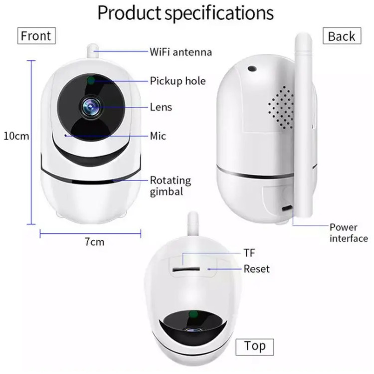 مزایا و مشخصات دوربین وایفای گردان Auto Track icsee365 بدون نیاز به کابل کشی | بدون نیاز به NVR قابلیت چرخش در ۳۶۰درجه افقی و ۹۰ درجه عمودی دارای قابلیت اتو تراک یا تعقیب سوژه در حال حرکت قابلیت مکالمه دو طرفه با وضوع صدای بالا دارای نرم افزار کنترلی بر روی موبایل و تبلت بر روی سیستم عمل های android و ios ساپورت مموری کارد ۱۲۸ گیگ | دارای قابلیت motion detection کنترل از راه دور بدون نیاز به IP STATIC و قابلیت نمایش و دانلود تصویر آنلاین قابلیت ذخیره سازی بر روی موبایل و دوربین همزمان | مجهز به IR CUT مجهز به سیستم مادون قرمز و دید در شب | رزولوشن تصویر1280*720P قابل نصب بر روی سقف و دیوار دوربین وایفای گردان مدل WiFi ip 6200 از قابلیت auto track پشتیبانی میکند بدین صورت که پس از راه اندازی دوربین با نزدیک شدن فرد متحرک دوربین ان را به منزله ی هدف شناسایی میکند و اقدام به تعقیب فرد متحرک میکند.