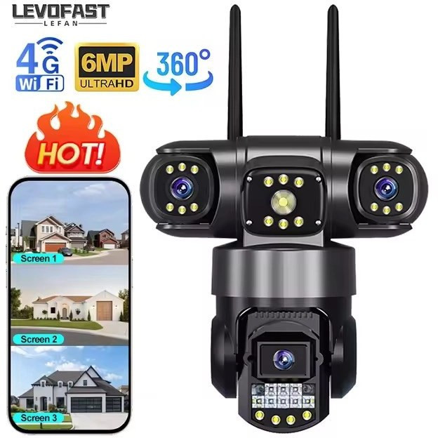 دوربین مداربسته اسپیددام 3 لنز سیم کارتی (4G) ;کیس بزرگ مدل 4G سیم کارتی PTZ camera ، با وضوح تصویر 12مگاپیکسل در مجموع و با نرم افزار محبوب V380 طوری طراحی شده است که شما میتوانید بدون استفاده از مودم و با قرار دادن سیم کارت داخل دوربین به راحتی محیط خود را از راه دور بر روی گوشی با3لنز واید دو عددبه صورت ثابت و قابل تنظیم در هر موقیعتی و دیگری به صورت چرخان مشاهده کنید یعنی شما با نصب یک دوربین سه فضای مجزا را میتوانین کنترل کنین و با چرخوانرن دوربین فضایی را از دست ندهین و دوربین را به صورت 355 درجه در محور افقی و 120 درجه در محور عمودی بچرخانید. همچنین این دوربین این قابلیت رو دارا می باشد که تصاویر و صدا را بر روی micro SD ( رم موبایل ) ضبط کند و انتقال دهد ، قابلیت پشتیبانی تا 128 گیگ رم را دارد و جنس بدنه این محصول از PVC مقاوم ساخته شده است ، قابلیت های مهم این دوربین : پایه ی دو دوربین نصب به صورت دیواری ،پایه ی متحرک برای تغییر وضعیت لنز ثابت،پروژکتور قدرتمند و iR (مادون قرمز) برای دید در شب فوق العاده در شب به صورت رنگی ، ضدآب بودن بدون محدودیت نصب در هر مکانی ، دزدگیر حرفه ای با قابلیت ارسال پیام هشدار ، توانایی دیدن تصاویر و صدای ضبط شده به صورت همزمان ، افزار علامت 4G که نشان دهنده کالای اصل است در داخل نرم افزار نمایش داده می شود، در همین راستا شرکت سفیر دوربین تلاش کرده که کالای اصل و ریجستری شده را برای مشتری ارسال کند.