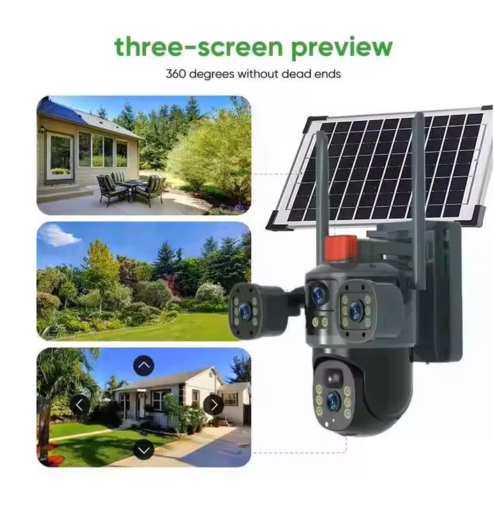 دوربین اسپید دام چهار لنز سولار با امکاناتی مانند سه تصویر همزمان، چرخش ۳۶۰ درجه، دید در شب پیشرفته، آژیر هشدار و تغذیه از انرژی خورشیدی، یک گزینه عالی برای نظارت حرفهای و هوشمند است.