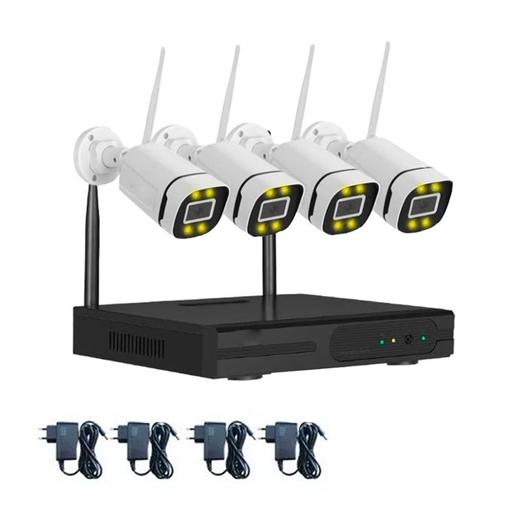 خرید پکیج 4 عددی دوربین بیسیم یکی از مقرون به صرفه ترین گزینه ها برای خرید یک سیستم امنیتی است. پکیج 4عددی دوربین مداربسته شامل 4 دوربین مداربسته بیسیم، دستگاه nvr، 4 عدد آنتن مورد نیاز دوربین، 5 عدد منبع تغذیه ، یک USB موس و پیچ برای نصب میباشد. نصب این سیستم امنیتی بدون کابل انجام می شود، به همین دلیل می توانید این دوربین مداربسته را به راحتی نصب کنید و هزینه های جانبی نصب دوربین مداربسته را به صفر برسانید؛ در پکیج دوربین مداربسته، 4 عدد دوربین با کیفیت 2 مگا پیکسل قرار دارد که تصاویر دوربین مدار بسته را با زاویه 95 درجه و به کمک nvr داخل هارد دوربین مداربسته بسته ذخیره میکند. یکی از مواردی که در دوربین مداربسته بیسیم اهمیتی زیادی دارد برد وای فای برای این دوربین هاست که از این لحاظ پکیج 4 عددی دوربین با پشتیبانی حداکثر 70متر فاصله از وای فای یک دوربین بلند برد به حساب می آید. خروجی تصویر این دوربین مداربسته در شب و روز کیفیت مناسبی دارد. برای مثال این دوریین با استفاده از سنسور WDR نور های نقطه ای که باعث کم شدن دید می شوند را خنثی می کند و خروجی تصویر مناسبی را ارائه می دهد. یکی از مزایای این دوربین تماشای تصاویر از طریق گوشی موبایل در هر نقطه از جهان می باشد که با استفاده از اپلیکیشن مخصوص xmeye بر روی گوشی موبایل android, iphone و ipad به راحتی انجام پذیر است. پکیج 4 عدد دوربین مجهز به استاندارد های حفاظتی IP65 هستند که این استادارد به معنی آن است که دوربین در هر دو فضای داخلی و بیرونی قابل استفاده است.