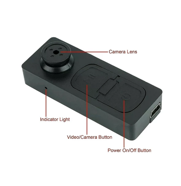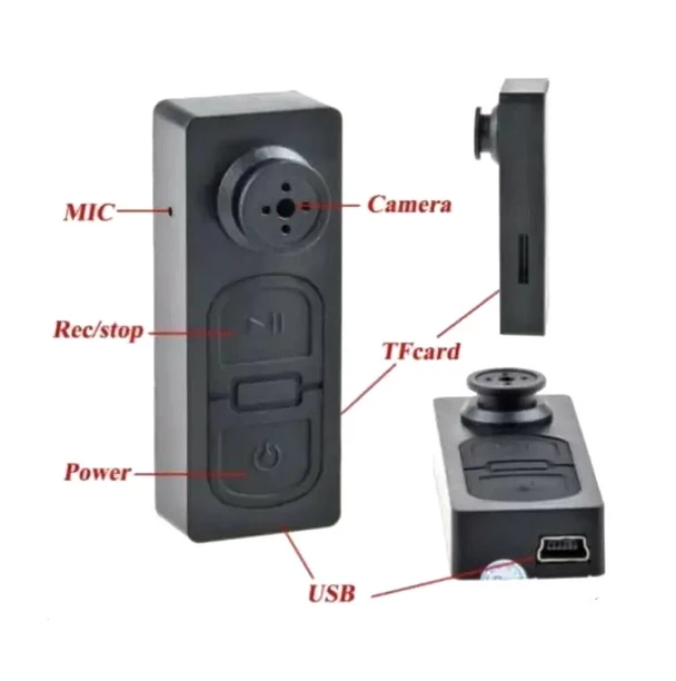 دوربین دکمه ای 2مگاپیکسل باتری لیتیومی داخلی، عملکرد مداوم، باطری داخلی این مدل دوربین فیلم برداری تا 60دقیقه قادر به کار است.