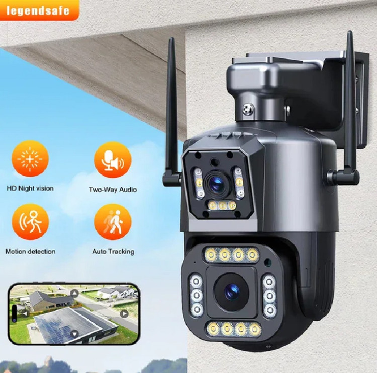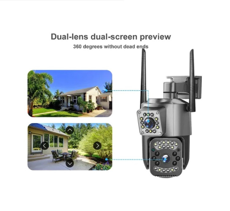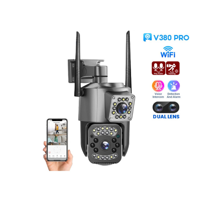 دوربین مداربسته اسپیددام دو لنز سیم کارتی (4G) ریجستری شده مدل 4G سیم کارتی PTZ camera ، با وضوح تصویر 8 مگاپیکسل مجموعو با نرم افزار محبوب V380 طوری طراحی شده است که شما میتوانید بدون استفاده از مودم و با قرار دادن سیم کارت داخل دوربین به راحتی محیط خود را از راه دور بر روی گوشی با دولنز واید یکی به صورت ثابت و دیگری به صورت چرخان مشاهده کنید یعنی شما با نصب یک دوربین دو فضای مجزا را میتوانین کنترل کنین و با چرخوانرن دوربین فضایی را از دست ندهین و دوربین را به صورت 355 درجه در محور افقی و 120 درجه در محور عمودی بچرخانید. همچنین این دوربین این قابلیت رو دارا می باشد که تصاویر و صدا را بر روی micro SD ( رم موبایل ) ضبط کند و انتقال دهد ، قابلیت پشتیبانی تا 128 گیگ رم را دارد و جنس بدنه این محصول از PVC مقاوم ساخته شده است ، قابلیت های مهم این دوربین : پروژکتور قدرتمند و iR (مادون قرمز) برای دید در شب فوق العاده در شب به صورت رنگی ، ضدآب بودن بدون محدودیت نصب در هر مکانی ، دزدگیر حرفه ای با قابلیت ارسال پیام هشدار ، توانایی دیدن تصاویر و صدای ضبط شده به صورت همزمان در نرم افزار است ، قابل ذکر است که همینطور که در تصاویر دوربین مشاهده می کنید ماژول سیم کارت در داخل دوربین قرار داده شده که پس از راه اندازی دوربین داخل نرم افزار علامت 4G که نشان دهنده کالای اصل است در داخل نرم افزار نمایش داده می شود، در همین راستا شرکت سفیر دوربین تلاش کرده که کالای اصل و ریجستری شده را برای مشتری ارسال کند.